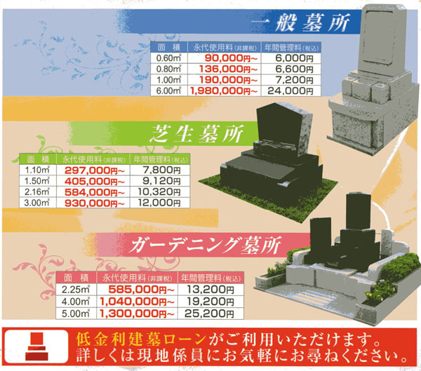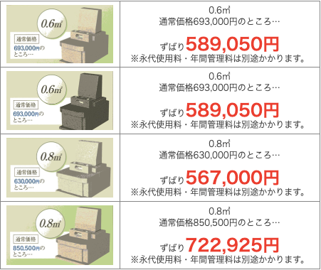 ●表示価格は墓石・工事代・消費税の総額です。(永代使用料・年間管理料は別途かかります。)