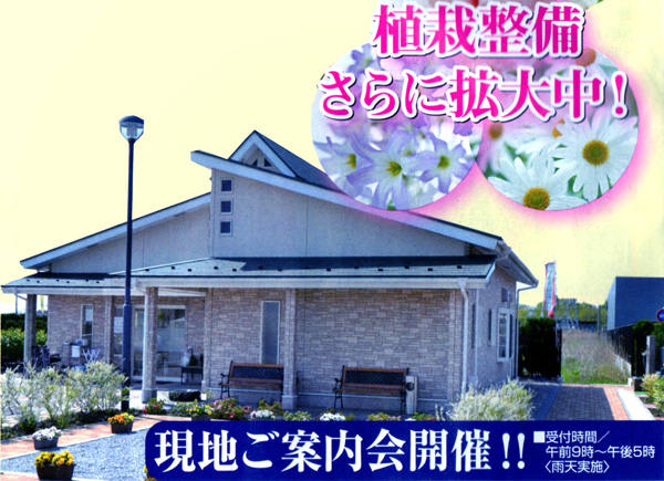 管理事務所、休憩ロビー、法要施設、トイレ、水場、駐車場 他