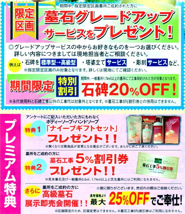 期間中、一般墓所1.74㎡以上の墓所にて工事契約された方が対象となります。
