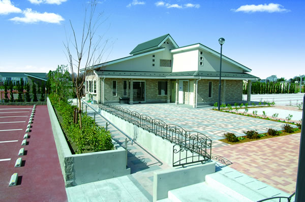 高級感漂う管理棟には、管理事務所や休息ロビーはもちろん、園内で全てまかなえる法要施設や手すり付き大型トイレを完備しております。
