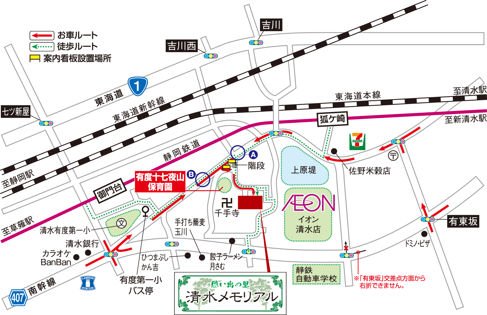 カーナビをご利用の方は「有度十七夜山保育園」を入力しますと現地付近までお越しになれます。