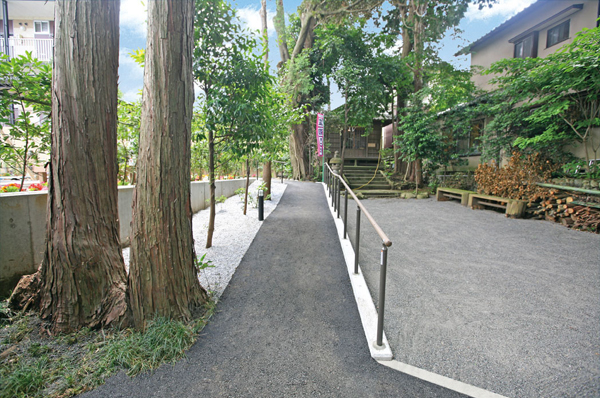 墓城の参道は、透水性に優れ、見た目にも鮮やかなインターロッキングを採用しておりますので、雨の日のお参りでも安心です。