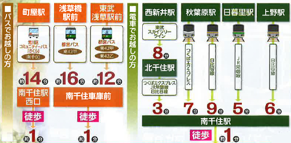 電車は、3つの路線(つくばエクスプレス・東京メトロ日比谷線・JR常磐線)南千住駅より徒歩1分